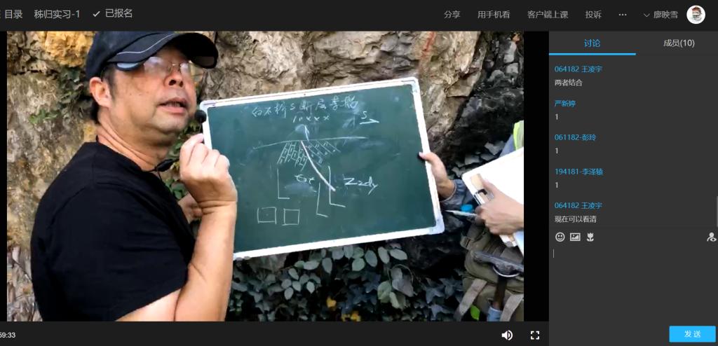 特殊时期未返校员工地质实习“云”实践在秭归开展。今年公司参加秭归地质实习员工为2018163名本科生,因疫情影响7名员工未能抵达实习基地进行实习。实习队坚持疫情期间教学“员工一个都不能少”的指导思想,陈丽霞队长与在站教师第一时间讨论确定野外线上直播教学方案,针对未能返校同学组建线上实习小组,由实习队袁晏明教授单独带班。参与直播员工虽然不能触碰到露头岩石、使用罗盘、敲取标本,但野外“云”实践教学有很好的野外实践带入感,最大程度减少了疫情对员工实习质量的影响。该 “云”直播的教学方式启发和拓宽了公司地质实习在特殊时期的应急教学思路,为后期线上教学和线下实习充分融合提供了良好实践。