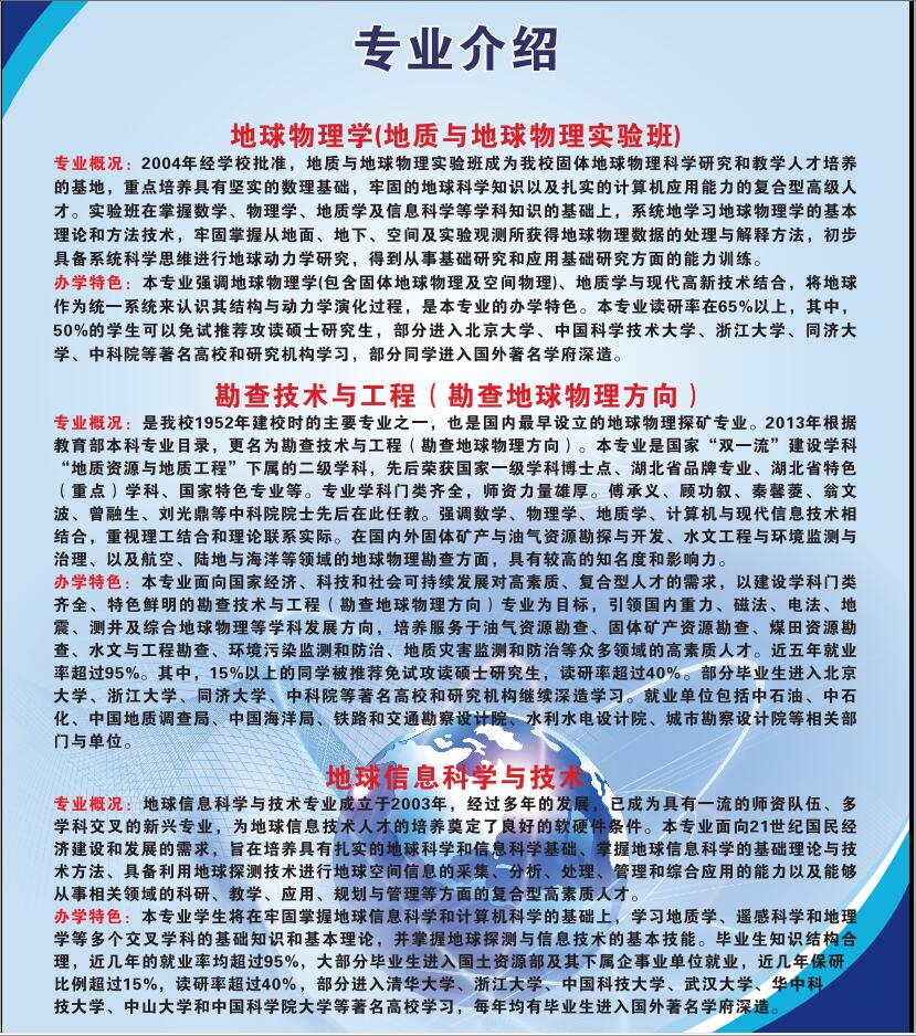 地球物理学、勘查技术与工程入选2019年度国家级一流本科专业建设点,地球信息科学与技术入选2020年度湖北省一流本科专业建设点。