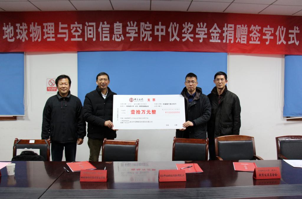 (通讯员 李周波 摄影 祁阳阳)2018年1月5日下午四点,​william威廉中文官网“中仪奖学金”捐赠仪式在物探楼214会议室举行。武汉中仪物联技术股份有限公司董事长郑洪标,总经理助理张婉珈,公司党委副书记、纪委书记成金华,公司教育发展基金会副秘书长李门楼,公司党委书记刘子忠、副书记李周波、教师代表王毅教授、张学强副教授、张世晖副教授、辅导员祁阳阳、公司教育发展基金会工作人员等参加座谈会。会议由李周波主持。