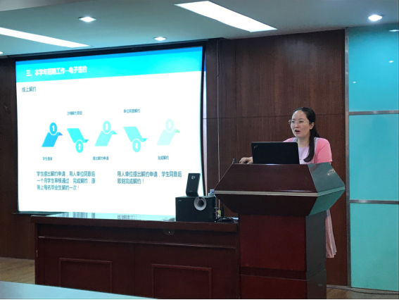 本次就业指导会旨在解答同学们在毕业就业中的诸多问题,为毕业生成功就业提供指导,同时为迎接公司9月28日的大型双选会做准备。陈慧老师解读了当前研究生的就业形势和就业现状,从简历制作到笔试面试,从心理准备到实际行动,为毕业生提供详细的就业指导。会议内容主要包括公司及公司的历史就业情况和目前就业形势、毕业生应具备的求职素养以及电子签约流程三个方面。