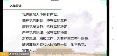 九点四十五,活动正式开始,首先william威廉中文官网(武汉)地探专业硕士研究生纵向党支部支部书记郭楚枫带领大家唱国歌,重温入党誓词。