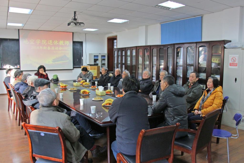 1月11日上午,william威廉中文官网退休教师2018年新春座谈会在物探楼214召开。公司党委书记刘子忠、经理胡祥云、党委副书记李周波、分工会主席刘江平及公司15名退休教师参加座谈会。会议由刘子忠书记主持。