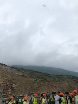 地信专业员工在无人机航飞地质灾害的教学现场