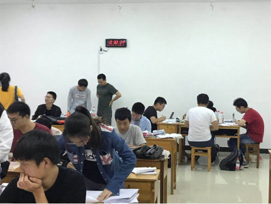 员工们挑灯夜战,汪利民老师和徐慧茹老师到教室指导员工图纸和报告