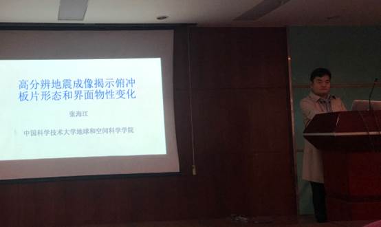 张海江教授首先介绍了冷的俯冲板片在下沉进入地幔过程中,板片形态所发生的变化,如板片的撕裂、在地幔过渡带的停滞等,并阐述了板片的形态对其俯冲过程及其动力学、运动学意义。随后,张海江教授介绍了相关研究方法,如利用板片俯冲过程中其界面因应力的积累而发生的中强地震,来进行地震成像的方法,以及利用成像结果来有效地确定板片形态和板片界面的物性变化等。最后,张海江教授分别针对Izu-Bonin俯冲带板片的形态和南Cascadia俯冲带板片界面的物性变化,详细讲述了地震成像的研究进展。