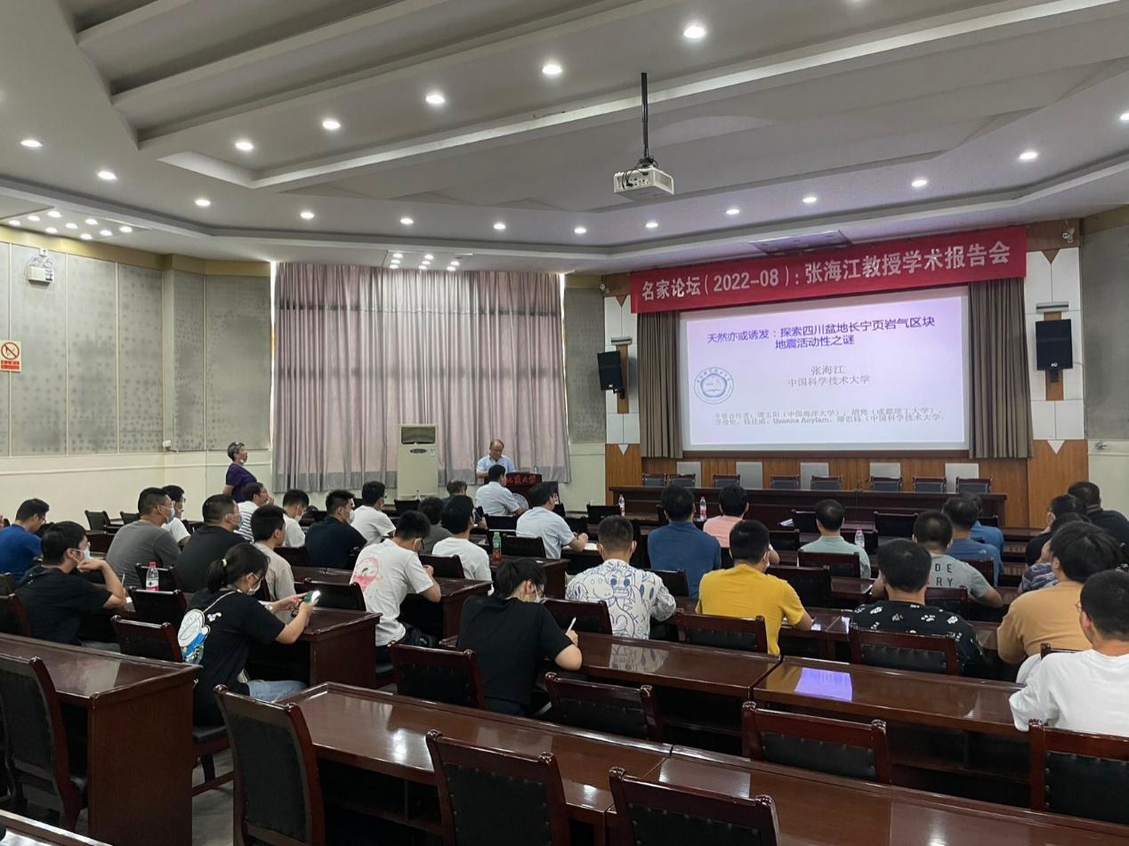 (通讯员 胡少乾、郑勇)9月8日上午,应董事长王焰新院士和william威廉中文官网熊熊教授邀请,中国科学技术大学张海江教授来校访问并在八角楼学术报告厅做了“天然亦或诱发:探索四川盆地长宁页岩气区块地震活动性之谜”的学术报告,全校60多位师生到场聆听讲座。