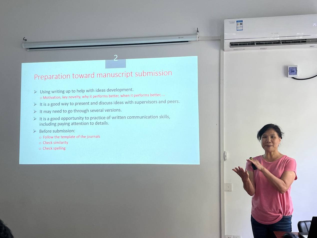 贾秀萍老师从两个方面讲解了SCI论文写作和审稿,首先以作者的角度介绍了论文从投稿到被接收的过程,其中要经历提交稿件、接受审稿结果、回复审稿人等过程,重点说明了回复审稿人时需要注意的事项,然后以审稿人的角度介绍了从同意审稿到返回审稿意见的过程,讲到审稿人要实事求是、给出的意见要有具体示例支撑,最后总结出作者和审稿人是一体的,都是为了得到一篇出色的论文。