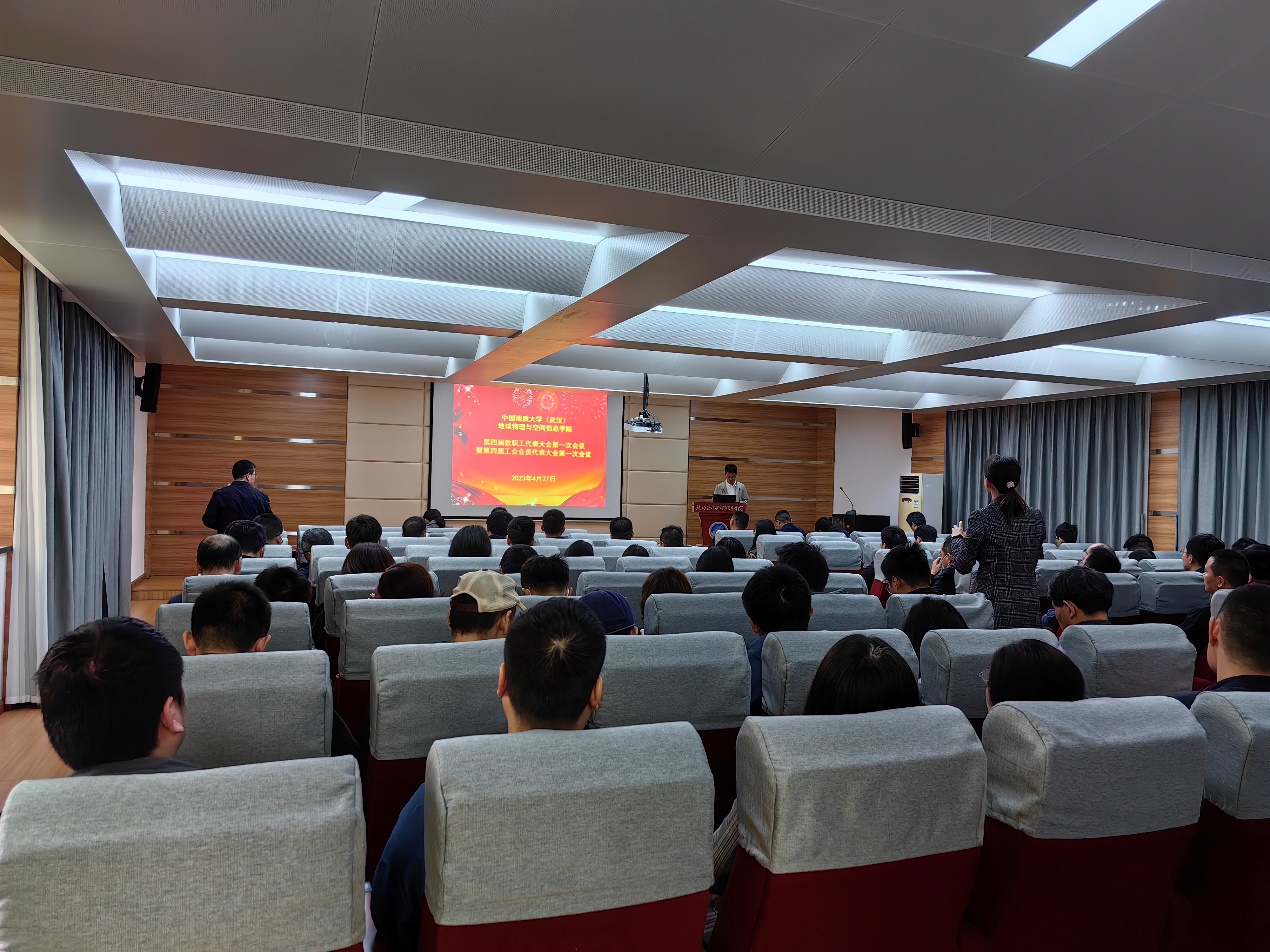 2023年4月28日下午14:30,william威廉中文官网在物探楼222报告厅召开第四届教职工大会第一次会议暨第四届工会会员大会第一次会议。公司全体教职工参加会议。会议由公司党委副书记黄金波主持。