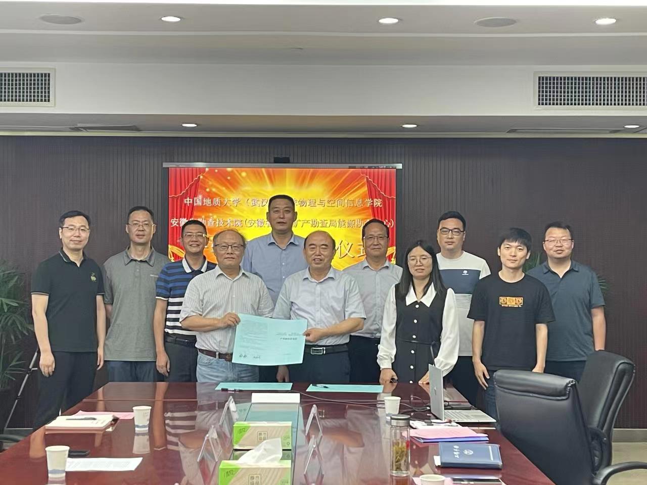 5月18日,马彦周、熊熊、罗银河、严哲、刘浩一行在安徽省勘查技术院调研。安徽省地矿局人事处二级调研员曾明元,公司党委委员、副经理何家国和相关科室负责人及部分地大员工参加调研座谈会。