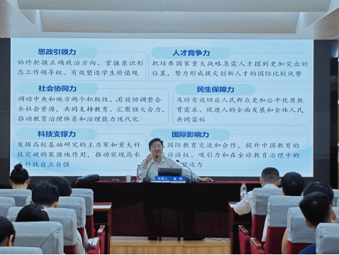 夏帆副董事长以《从教育大国迈向教育强国》为题,系统回顾了我国教育事业取得的辉煌成就,深刻阐述了建设教育强国的战略支撑与核心任务,强调了教育在培养党和国家的栋梁之才、支撑科技自立自强、服务国家高质量发展中的关键作用,勉励青年党员要胸怀“国之大者”,锤炼过硬本领,勇当新征程上的开路先锋和事业闯将。