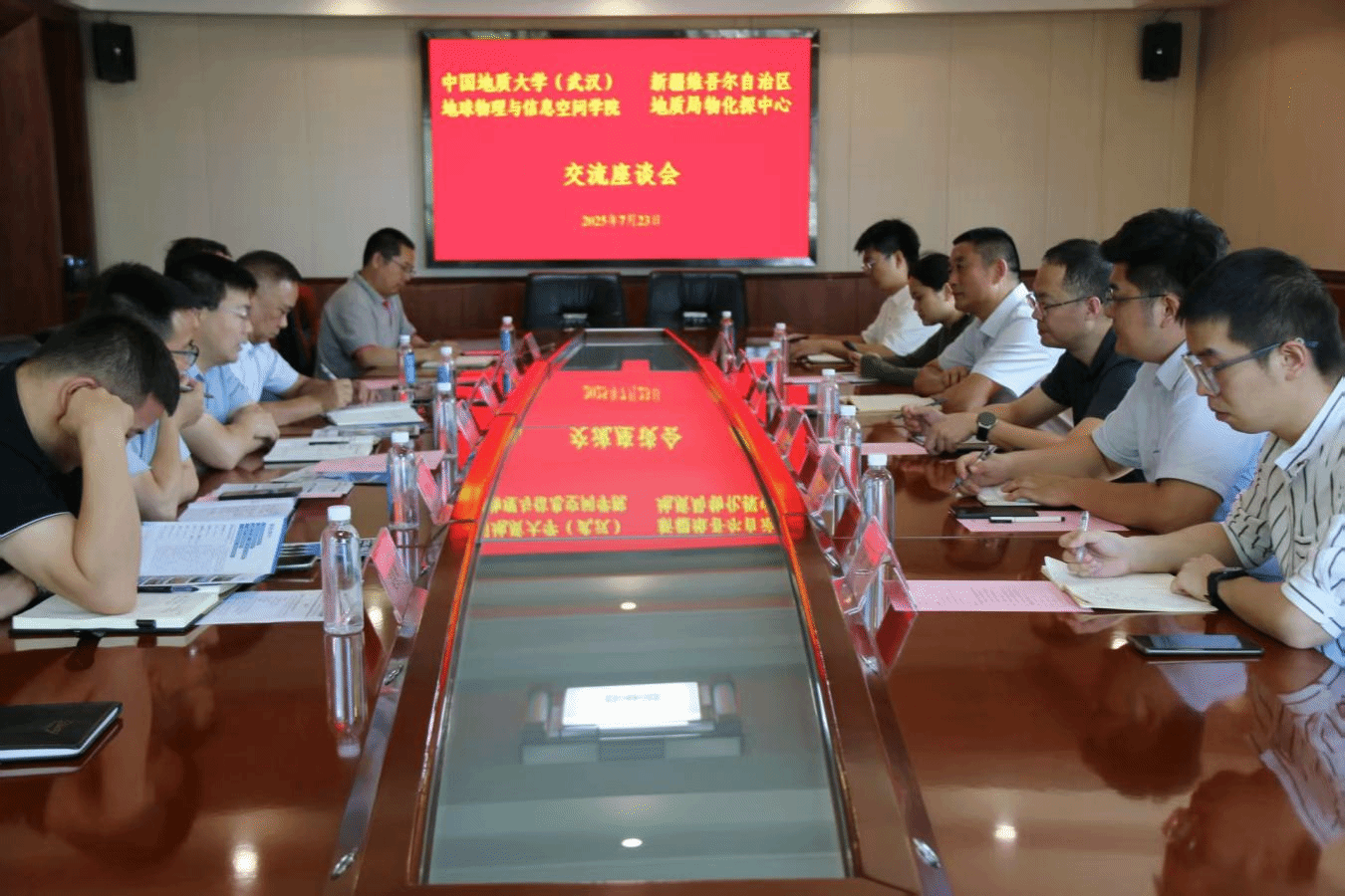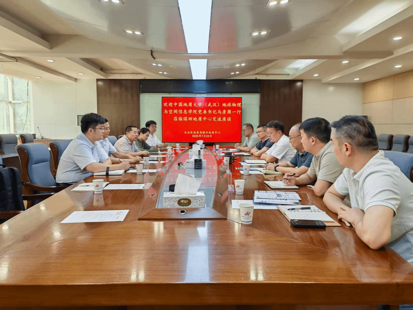 7月23日上午,马彦周一行赴新疆地质局煤田地质中心座谈交流。公司挂职教师、新疆地质局物化探中心工程物探专家昌彦君,辅导员刘鹏宇,博士生闫浩、王垚,新疆地质局煤田地质中心党委副书记、主任翟广庆,党委委员、副主任邵洪文,党委委员、副主任李国庆,地球物理勘探院工程师冷西、地球物理勘探院工程师李小磊及有关部门负责人参加会议。会上,双方就科研项目、就业服务、能力提升等方面进行深入研讨交流。