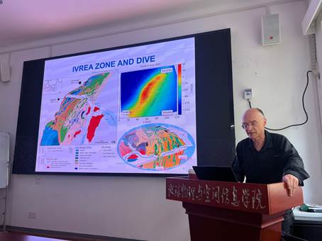 在第二场讲座中,Holliger教授聚焦于大陆下地壳成分的研究。他指出,目前关于下地壳成分的推断主要依赖于P波速度的估计,而P波速度与SiO₂含量呈系统性负相关。传统观点认为下地壳以镁铁质为主,但越来越多的研究开始提出中性或酸性成分的可能性。