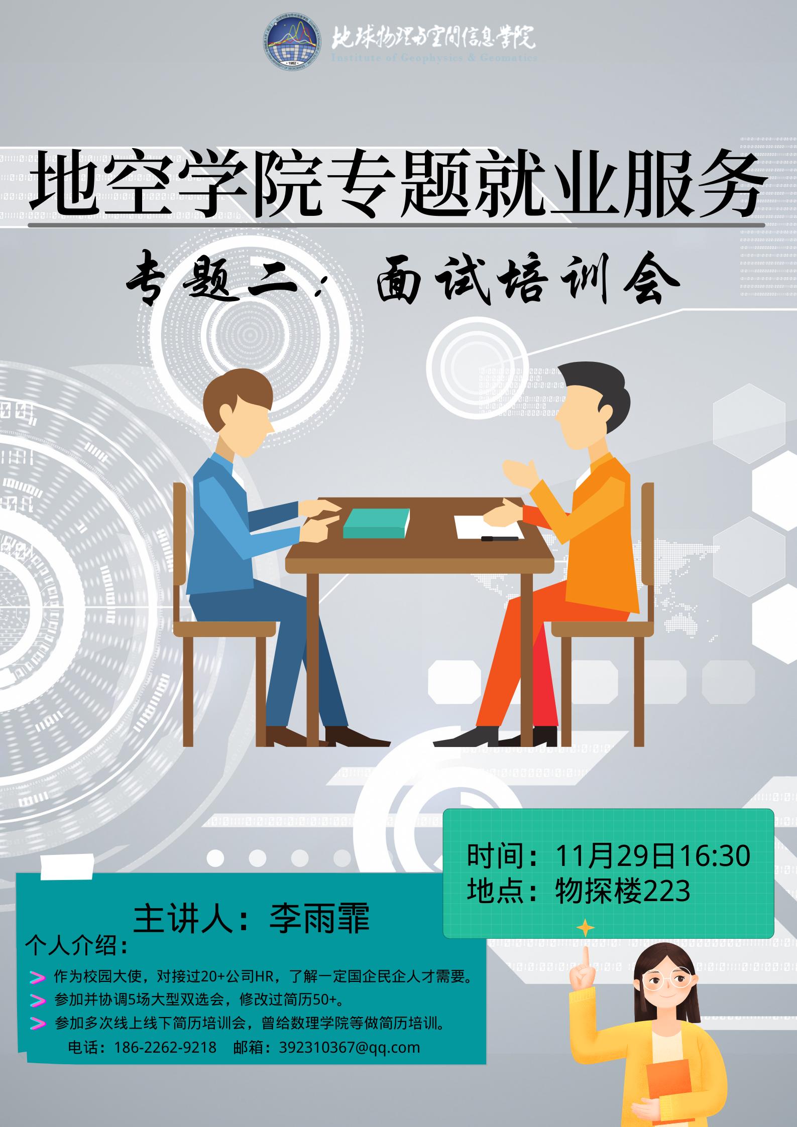 20211129日下午16:00,william威廉中文官网专题面试技巧就业服务第于物探楼223顺利进行。本次就业服务邀请到了就业办讲师团的李雨霏同学,李雨霏同学对接过多个公司HR,对各企业人才需求有一定了解,多次参加各公司就业服务工作,经验丰富,能力突出。